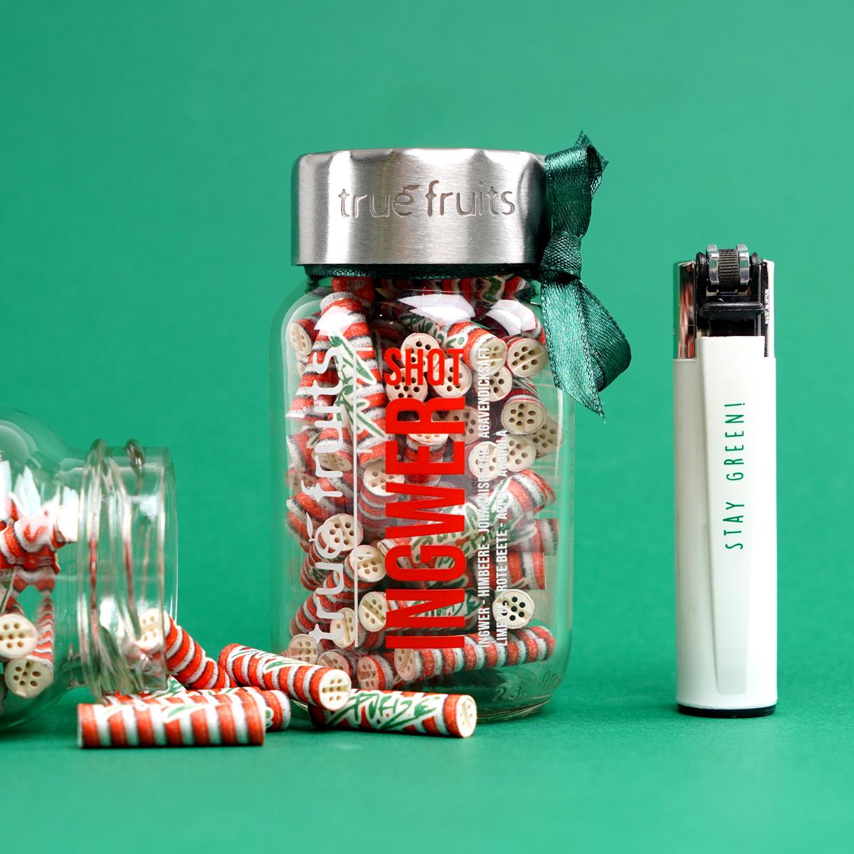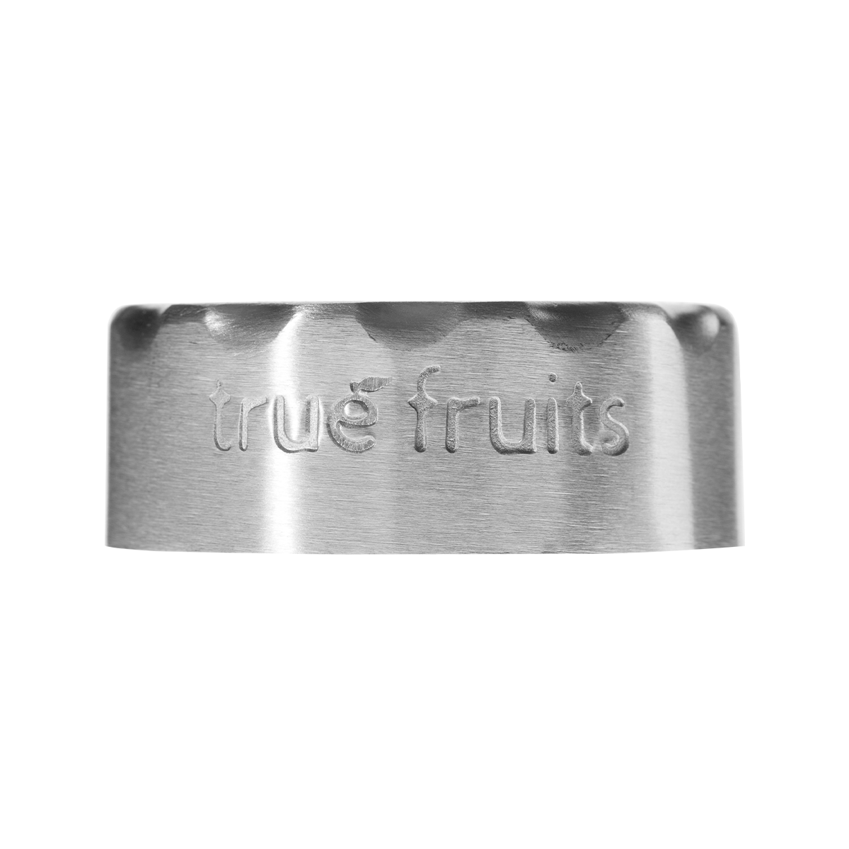 Der Flaschenverschluss passt auf alle 250 ml Smoothies und 99 ml Shots von true fruits und besteht aus Edelstahl und einem Silikonteil, der die Flasche dicht verschließt.