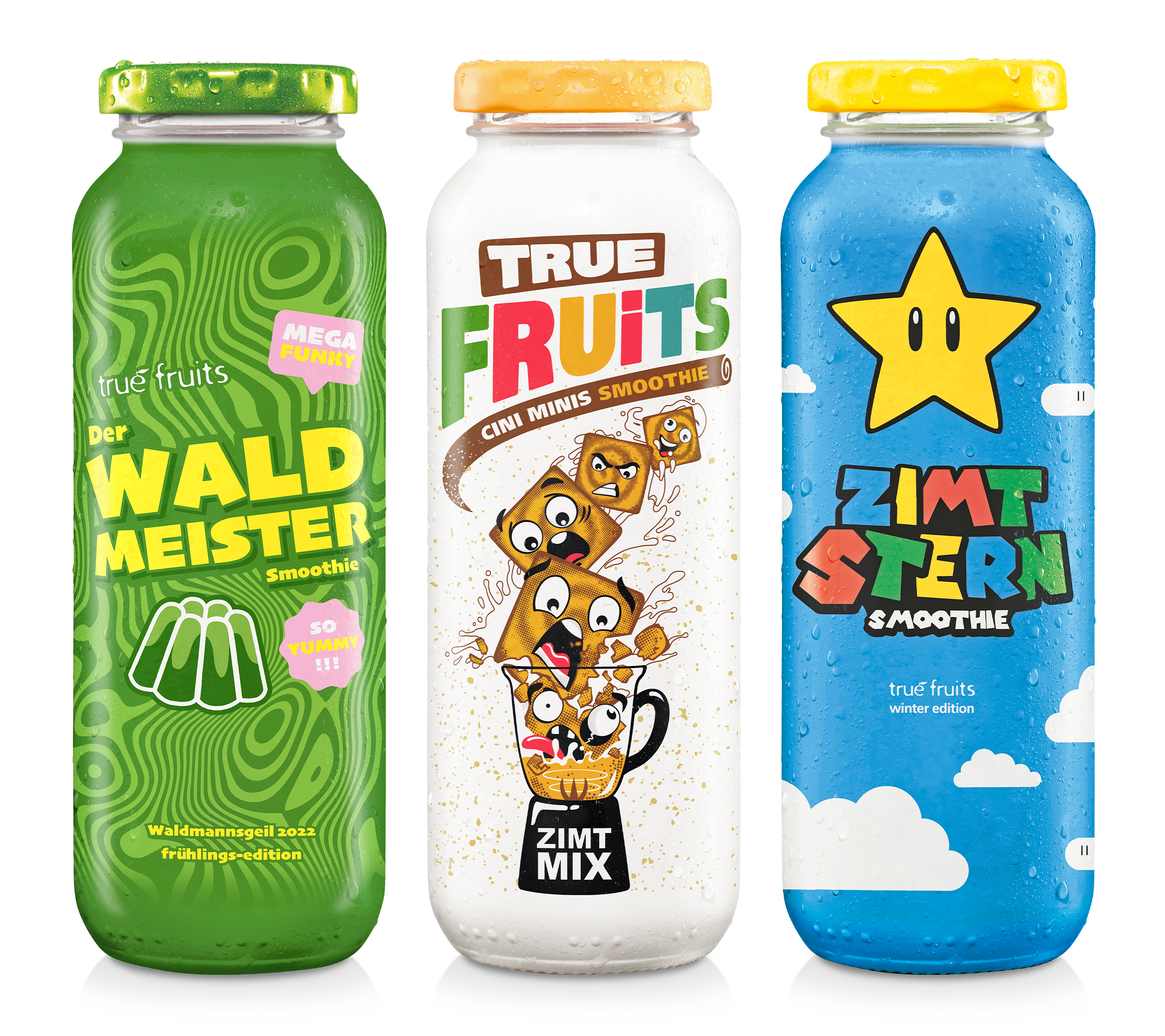 Zutaten: 25% Orangensaft, 24% Apfelsaft, 20% Bananenpüree, 18% Mangopüree, 13% Maracujapüree.