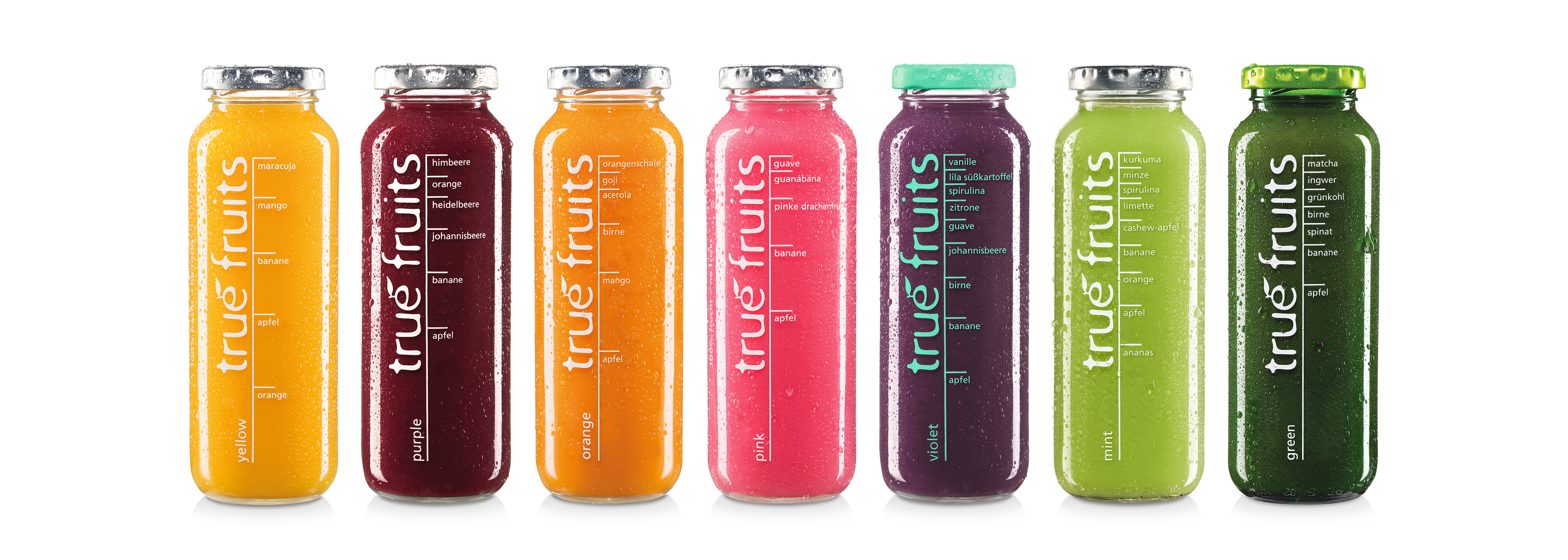 Hasta los niños saben que la fruta es saludable. Pensamos que sería estupendo poder comprar deliciosos smoothies listos para consumir directamente en el supermercado. Sin embargo, a menudo los alimentos de los supermercados tienen mala reputación: están fabricados de la forma más barata posible y mezclados con aditivos. Nosotros queríamos ofrecer un producto natural y valioso. true fruits: sin trucos, sin concentrados, sin colorantes, sin azúcares añadidos, sin estabilizantes y sin otras tonterías antinaturales. Y por supuesto, solo con las mejores frutas. Esto no es tan fácil como pensábamos. Por ejemplo, hay más de 1000 tipos de mango diferentes. Honestamente, aún no los hemos probado todos, pero sí la mayoría, y nuestra favorita es una variedad india. Te diríamos cómo se llama, pero será mejor que eches un vistazo aquí.