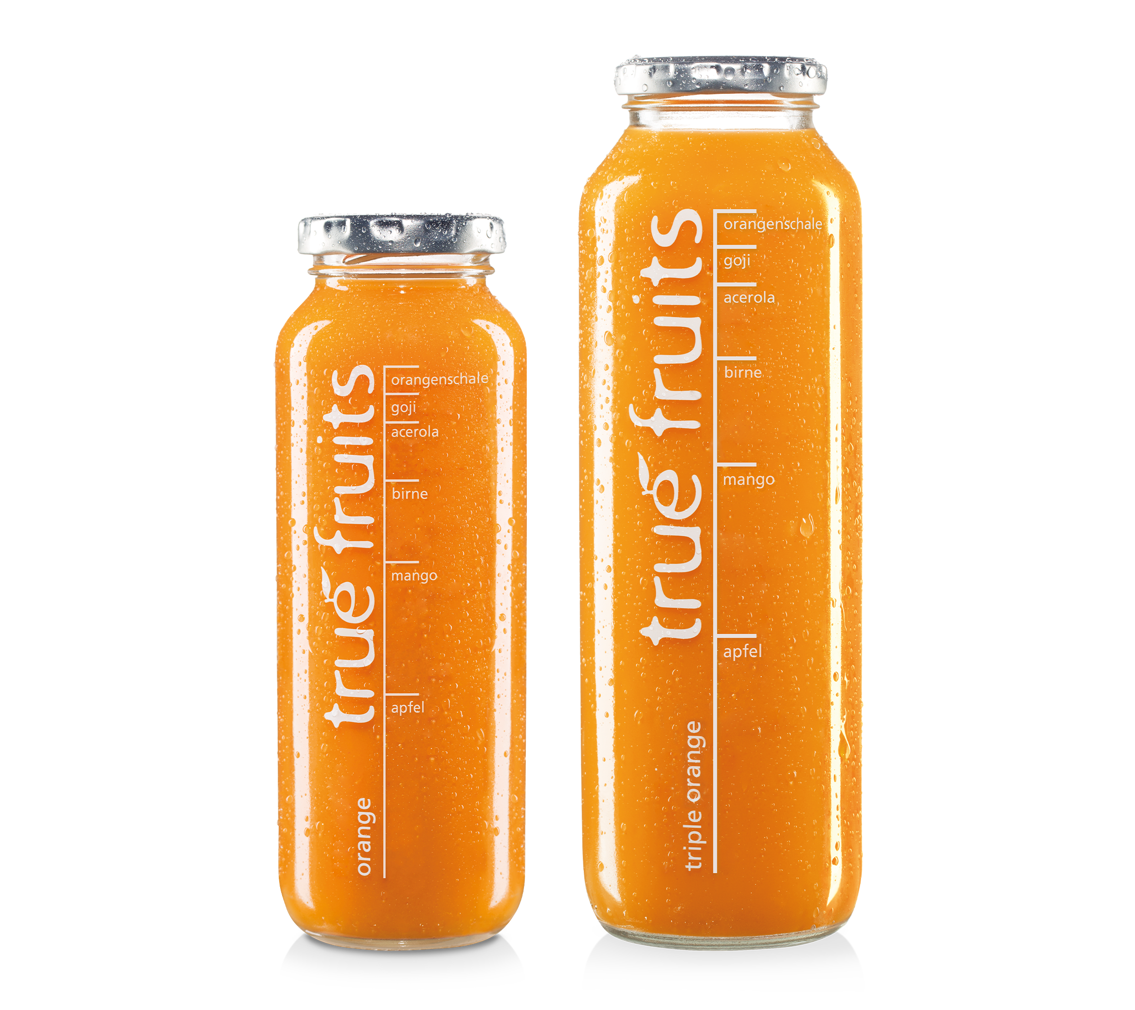 Zutaten: 43% de jus de pomme, 15% de purée de banane, 13% de purée de cassis, 10% de purée de myrtille, 7% de purée de framboise, 7% de jus d'orange, 5% de purée de groseille.