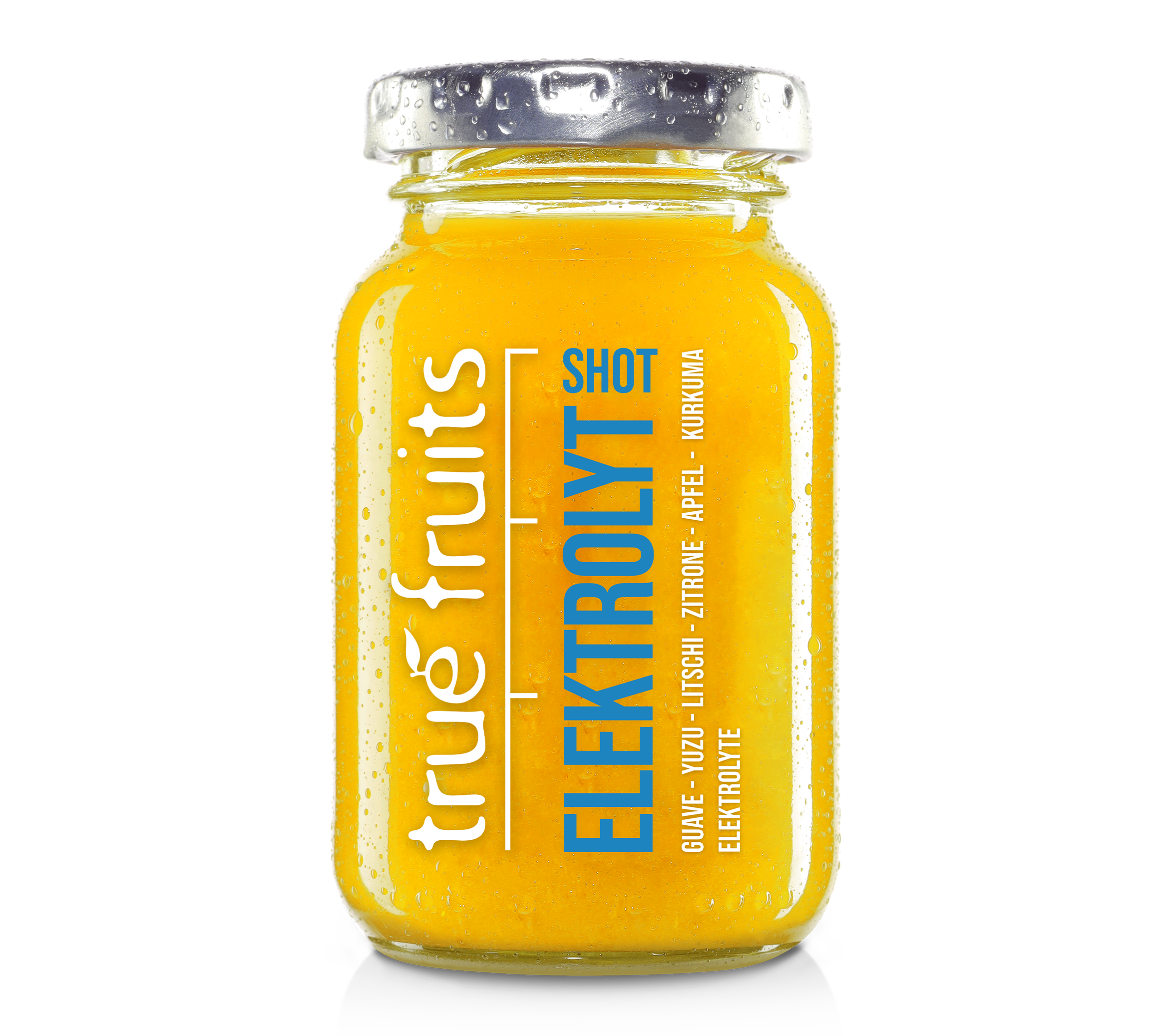 Zutaten: 26% Pfirsichpüree, 20% Apfelsaft, 17% Bananenpüree, 15% Orangensaft, 14% Kokosnusspüree, 5,5% Maracujapüree, 2,5% Cashewpüree.